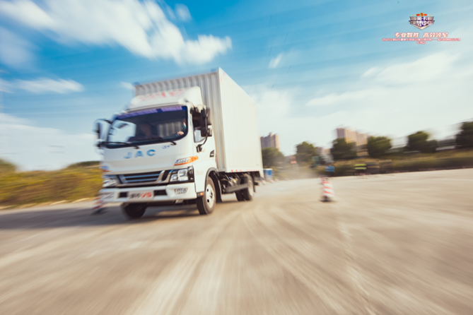 开赛前,主持人对赛道设置和比赛规则进行了详细讲解,并对比赛用车进行了介绍,本次比赛所采用的车辆是专为快递快运量身打造的骏铃小旋风V5,搭载安康3.0发动机,最大马力160匹,动力强、油耗低、可靠性高,是目前快递快运市场使用较多的轻卡车型。搭配江淮原厂厢体,承载能力稳定可靠,轿车化的内饰驾乘更舒适。同时,骏铃小旋风的轻量化设计能够最大程度发挥车辆的动力性能、提升操控性,因此在赛道上能够更加公平地展现选手的驾驶水平。