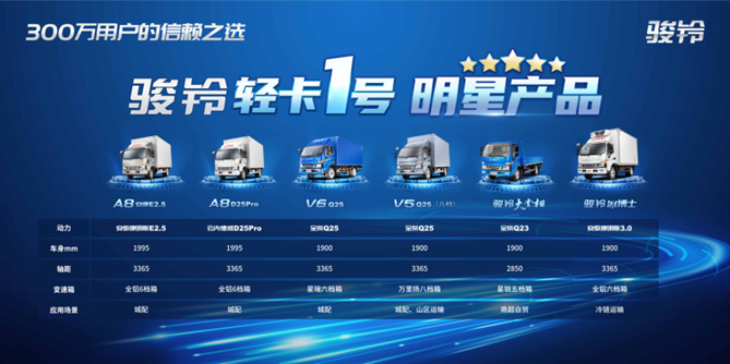 为了更好地践行新规,除这款中体Q23明星车型外,蓝牌1号骏铃还推出了搭载安徽康明斯E2.5、云内德威D25Pro发动机的骏铃A8,搭载全柴Q25发动机的骏铃V5(八档)、骏铃V6,以及搭载安徽康明斯3.0发动机的骏铃冰博士,完美解决城配、商超自贸、山区运输、冷链等细分市场用户在新规之下的合规需求,成为中国轻卡典范、高端蓝牌轻卡的标准创造者。