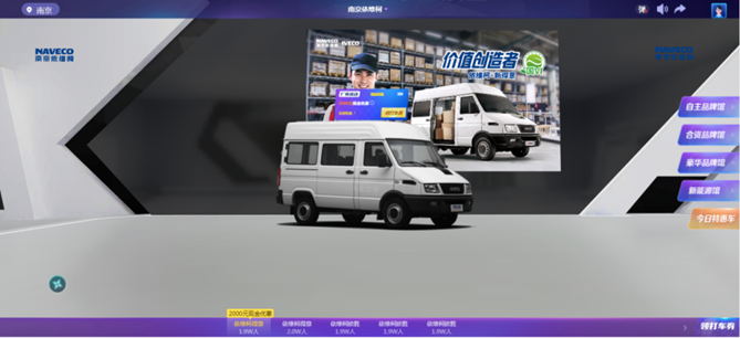 功能方面,云展厅支持城市切换,可以针对用户定向展示当前城市的优惠信息,还可以可以分地域、城市领取免费打车,出行券、到店红包,真正的为用户提供了便捷和福利;直播间中专业的讲解员,将为用户呈现一场有关汽车特色、性能的精彩讲说;值得一提的是,线上展厅除了可以展现炫酷的车型,更有“VR看车”功能可为用户打造一个永不落幕的车展,用户可以全方位、立体的欣赏到中意的车型,实现沉浸式看车的别样体验;同时还有“云到店”功能,由线下门店的经销商为用户详细介绍车型的外观、内饰以及智能科技配置,更懂你的依维柯将带给你与众不同的看车体验。这些丰富有趣的交互功能,不仅能更直观地展现车辆,也能让用户深度参与印象深刻。