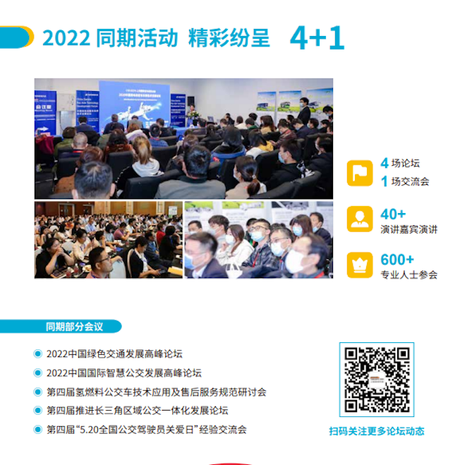 5场行业高峰论坛,5大模块专属展区,40000多平方展出面积,100+城市地区公交公司,300+参展企业,50+业界大咖分享交流,35000多位现场参观者。