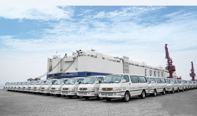 出口埃及市场的1000辆金旅海狮在厦门现代码头准备装船中
