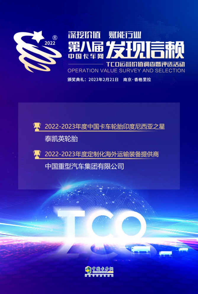 中国重汽荣获2022-2023年度定制化海外运输装备提供商;泰凯英轮胎摘得2022-2023年度中国卡车轮胎印度尼西亚轮胎之星!