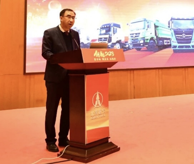 王铁生回顾了北奔重汽2022年的经营发展情况并强调,2023年,是全面贯彻落实党的二十大精神的开局之年,也是实施“十四五”规划承上启下的关键之年。党的二十大报告中指出要加快建设制造强国、质量强国、航天强国、交通强国、网络强国、数字中国。国家科技部等部委指出要坚持场景驱动,与公司“场景先行”如出一辙,为公司发展提供了良好的外部环境和难得机遇。从自治区、包头市发展看,自治区在政府工作报告中指出,加快推进制造业高端化、智能化、绿色化,实现“风光氢储车”一体化推进。从行业发展趋势来看,重卡行业作为“王冠上的明珠”,随着“两会”换届、政策出台等利好因素的积极预期,重卡市场需求会呈现逐季好转的趋势,在这样的大背景下,北奔结合自身实际,制定了进一步发展的思路、目标和措施。2023年北奔的销售目标已经明确,需要各位合作伙伴一如既往地支持,更需进一步加强沟通和交流,创新工作思路及方法。一是强化渠道建设,提升渠道运营质量。二是强化品牌建设,实现产品卓越,品牌卓著。三是强化金融支撑保障能力。四是强化沟通互动。五是强化服务保障。未来,北奔重汽将在中国兵器工业集团、地方政府的大力支持下,在各位经销商、服务商及各界朋友的配合下,以崭新的姿态迎接面临的机遇和挑战,开启双方合作发展的新篇章。