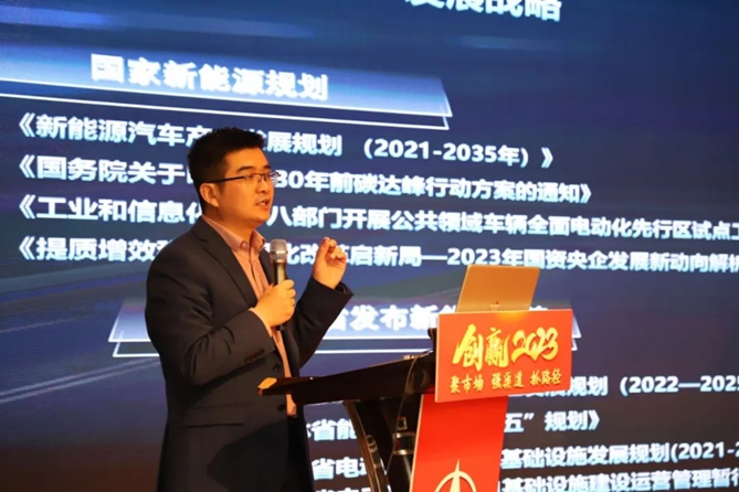 北奔重汽营销公司东北大区经理张春宝围绕行业回顾及市场展望、市场营销策略、2023年渠道支持和2023年区域目标及重点工作,作《2023年东北大区商务年会主题报告》。2023年东北大区协同广大合作伙伴踔厉奋发、勇毅前行、共创佳绩。用激情与拼搏全力创赢,确保完成年度销售任务。