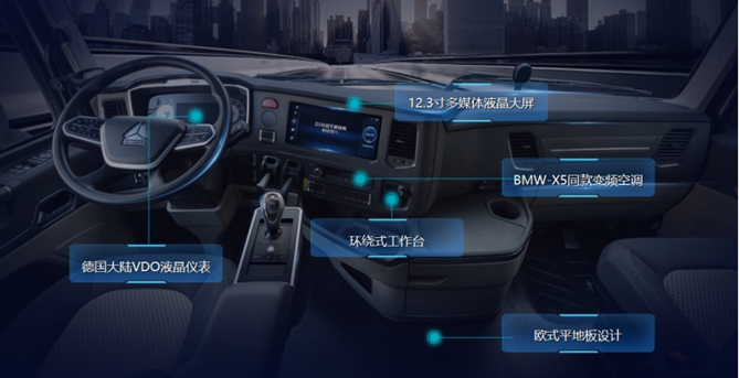 车辆采用乘用级奢华内饰,环绕式工作台、航空座椅、萨克斯125mm大直径四气囊减震系统,长时间驾驶不易疲劳;舒适自动挡,无忧智能换挡,解放司机右手和左脚;德国大陆VDO液晶仪表、BMW-X5同款恒温空调,堪比豪华轿车体验;欧式平地板设计、超宽卧铺、超大储物空间,多项人性化配置打造舒适“移动之家”,贴心舒适一路相伴。