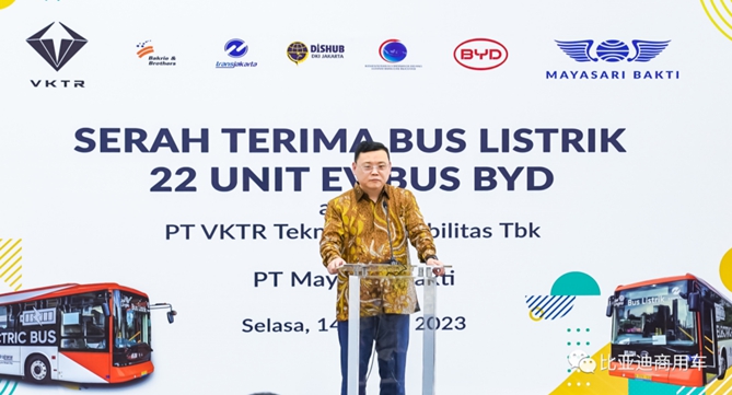 2022年,比亚迪携手其印尼合作伙伴VKTR集团宣布与当地巴士组装厂Tri Sakti达成合作,三方共同推进印尼新能源汽车产业化进程。3月8日,首批30辆比亚迪大巴成功交付首都雅加达的公交运营商Transjakarta,这是印尼首批正式投入运营的纯电动大巴。