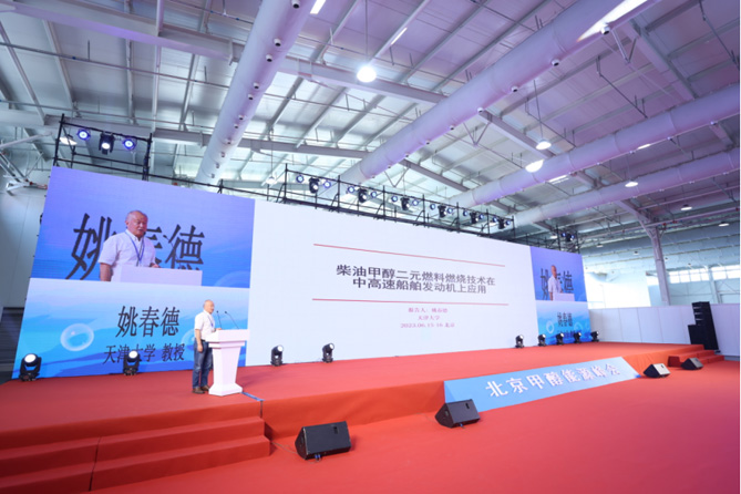 在船舶动力单元,交通部水运科学研究院船舶运输技术研究中心主任李坤以《中国船舶甲醇燃料应用》为题发表主题演讲;中国船级社武汉规范研究所高级工程师雷伟作了题为《船舶应用甲醇燃料技术规范》的主旨报告;天津大学教授姚春德以《柴油甲醇二元燃烧技术在中高速船舶发动机上应用》为题进行了甲醇应用的技术分享。