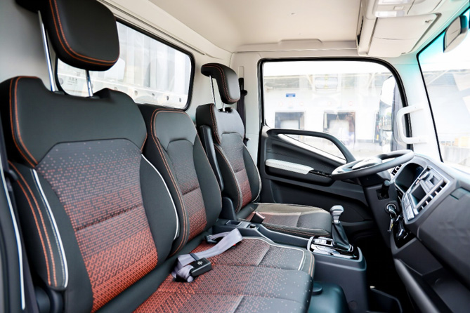 奥铃玉兔Ⅲ采用新一代气囊减震座椅,具备两级腰部支撑,通风、加热统统可选,长时间驾驶不再疲劳。同时,座椅可轻松折叠,描边双人卧铺,休息起来更加舒适。车内增加多处储物空间、手机支架,更加便捷舒。另外奥铃玉兔Ⅲ还具备巡航自适应功能,AMT与整车电控系统良好交互,变速箱TCU可通过CAN线接收巡航控制状态信号。在自动模式下,驾驶员启巡航时,变速箱自动升/降挡位,长途更轻松。