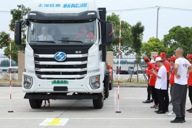 据了解,本次比赛用车均采用上汽红岩纯电动智能重卡,专注于港口、厂区等集卡运输场景。该车型搭载282kW·h的大容量电池,电机额定功率为250kW,峰值功率为360kW,在实际运输中不仅提速快、爆发力强,电耗成本更低至0.47kwh/km,为选手们完成挑战项目增添高效助力。