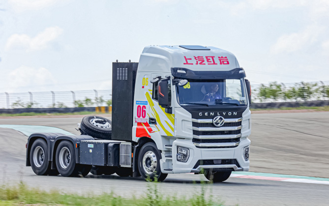 长达一小时的耐力赛,考验的不仅是车手的专注,更是对参赛车辆在高强度的行驶状态下,动力性、持久性、安全性、可靠性的全方位大考。红岩杰狮H6氢能重卡兼具功率大、动力强、续航长三大优势,配备了127kW·h宁德时代动力电池,搭载额定230kW,峰值360kW电机,可输出490Ps的澎湃动力,最大扭矩2800N·m,强劲的动力配置让车辆能从容应对赛道之外不同工况场景带来的挑战。