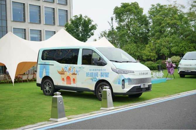 周先生说,依维柯聚星的超高颜值,改变了他对轻客固有的认知,一体化科技前脸,流光车身造型,巨幕全景侧窗,还有Eye-light星眸灯语系统等等这些都让它看上去更像是一辆新能源的MPV PLUS,科技与时尚并存。