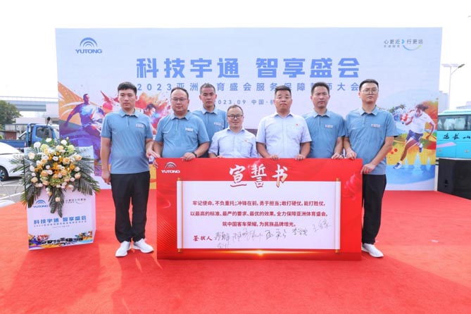作为服务本次亚运会的主力担当,“宇通代表队”已经进入紧锣密鼓的备战状态,全身心投入盛事保障攻坚战。9月12日,以“科技宇通 智享盛会”为主题的2023亚洲体育盛会服务保障誓师大会在浙江杭州隆重举行,“宇通代表队”就此吹响了决胜亚运会的进军号,将再一次站在世界的聚光灯下,向世界展示亚洲魅力与独特风采。