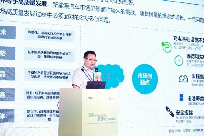 随后,中国汽车工程研究院股份总法律顾问、总监、指数管理中心主任抄佩佩,揭晓沙龙主题——“中国新能源汽车产业绿色高质量发展”,并带领重温“领跑者”项目推动汽车产业绿色高质发展的理念与初心。