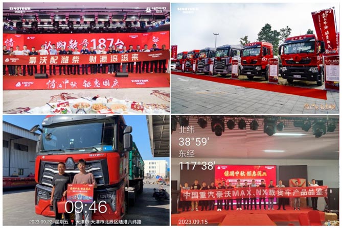 中国重汽豪沃开展了区域节油赛、小型座谈会、驻巡展、交车亲情会、客户答谢会、客户走访等共计272场行销活动;共走访客户约6326人次;举办“情满中秋 钜惠国庆”主题的中、大型答谢会共计110场,成交订单2100辆,其中,首场济宁站团购会斩获187辆订单;推出了团圆礼、抵扣礼、金融礼、平安礼、服务礼等五重大礼,为“双节”引流起到了关键作用。