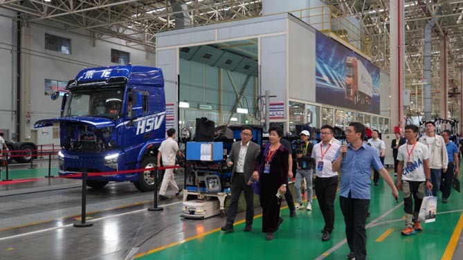 在乘龙工作人员的陪同下参观团近距离参观了乘龙的多条商用车产品线以及数字化智能工厂高科技生产线,切身感受到了乘龙雄厚的技术底蕴及品牌实力。