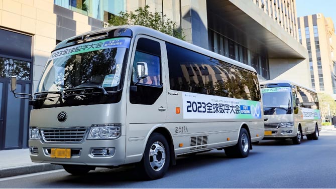 在进博会期间举行的2023全球数字大会上,来自全球数字经济领域的院士专家、企业家等齐聚一堂,共话数字经济新发展蓝图,共促数字经济产业繁荣发展。宇通T7凭借优异的产品性能及丰富的盛事盛会服务保障经验,成为全球数字大会官方指定用车,担纲与会嘉宾的接驳服务保障任务。
