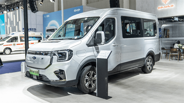 除了纯电轻卡,现场亮相的江铃福特E全顺客运版同样出彩。在客运市场变革浪潮下,江铃福特E全顺化身“全场景智慧轻客”而来,既是行业首款实际续航大于300km的轻客,又拥有领先行业标准的绿色节能、安全可靠等品质,为旅游客运、物流货运、商务接待等丰富场景提供更全面的出行解决方案。充足的电能供应还带来警用、医疗等任务型改装的优势,满足更多用户场景用车需求。