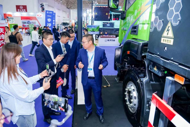 与此同时,上汽红岩智电版新能源重卡首次亮相行业展会。作为上汽红岩聚焦前瞻技术落地应用,加速产品的技术迭代,为用户带来的绿色运输方案。产品拥有五合一集成智控技术,行业首创全系标配FOTA功能,云数据场景感知,大数据动力智算,场景智适应,高效能量回收,最高可达70%。同步展出的还有上汽动力智慧天燃气发动机、电驱桥、上菲红电驱桥等优秀产品,充分表达出上汽红岩“向新转绿”的战略决心。活动现场,工作人员还向现场嘉宾生动介绍了上汽红岩新能源场景应用生态沙盘,让大家更为直观地感受到了上汽红岩新能源重卡丰富多元的场景应用。