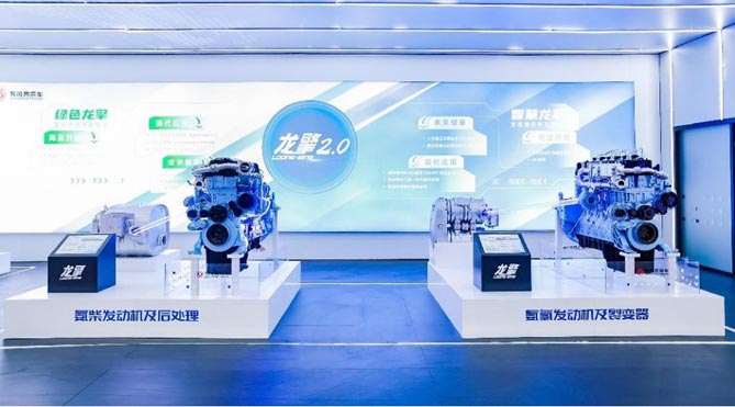 在发布会现场四周,应用于各场景的绿智代表产品也同步静态展出,包括:新一代氢燃料牵引车,匹配东风自主大功率燃料电池系统,可实现行业最大功率、最低能耗、最大动力;东风天龙GX-自主L2+级智能驾驶牵引车,匹配东风自主智能驾驶系统,可靠性、耐久性处于国际领先水平;全新造型、动力升级、能耗更优的新一代KL换电牵引车,五分钟完成换电补能作业,便捷换电带来续航无忧;全新升级的行业最低气耗东风天龙KX大马力燃气车,行业首家采用1350L双气瓶;新一代天锦KR载货车,匹配全新驾驶室、自主电驱动桥、自主上装及电池底置;以及通过专业化底盘和专业化上装的充分协同,为专用作业场景打造的12方KC纯电动搅拌车。