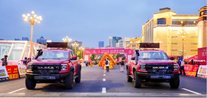 作为赛事总冠名赞助商,江铃大道携旗下大道敢探者、大道追光者、大道全能者、大道飞将以及大道EV版五大车型,全心全意为参赛者保驾护航,助力参赛者奔赴心中热爱,完美诠释了其不畏挑战、持续向前奔跑的马拉松精神。