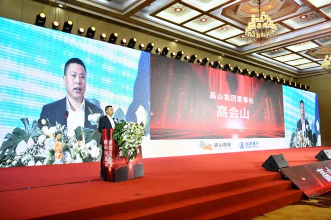 高会山在致辞中表示,高山汽修救援与北奔重汽、双星集团、聚能重工集团、河钢集团、京东等国有、民营大型企业以及社会大型物流企业福佑卡车等实现了深度合作。更多社会名流、行业大咖成为高山汽修救援志同道合的合伙人,有力地促进了高山汽修救援事业的高质量发展。北奔重汽党委书记、董事长何清赞美高山汽修救援为“民之英豪”,高山人深受鼓舞。作为有着“红色基因”的国之重器北奔重汽,与高山汽修救援相互赋能,充分发挥各自优势,积极探索新的合作模式,建立起全方位的合作关系。高山汽修救援审时度势,精心谋划,超前布局,把控汽修救援行业数字化发展现状和趋势对经济社会发展的影响,认真落实国家大数据战略,以前瞻性的视野和创新的理念,积极建设数字化智慧救援平台,为中国汽修行业树立新的标杆,也为全国的商用车司机朋友带来了更加便捷、安全的服务体验。