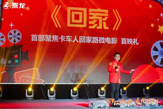 大会现场,乘龙邀请卡友们成为微电影《回家》的首映嘉宾。这是首部聚焦卡车人回家路的微电影,将卡友对“家”的情感渲染得淋漓尽致,让观众感受到乘龙对卡友的关怀与尊重。
