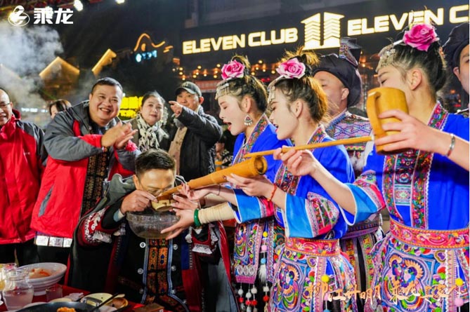 除了品尝美食,卡友们还换上民族服装,深度体验了当地的民俗风情。对山歌、敬茶、送吉祥花、芦笙吹唱、拦路迎宾、高山流水,一路热闹非凡。