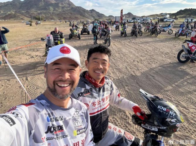 说起赵宏義,在很多达喀尔车迷心中可谓是“偶像级”车手,他先后8次征战达喀尔,此前在无后援组选手在比赛中,在全程不允许接受任何后援团队支持的条件下,他经受体力、耐力、综合素质的极大考验,最后拿到了无后援组第7名的卓越战绩,这也是目前为止唯一一位成功挑战无后援组的中国车手。今年的比赛中,在第四赛段距离终点仅一步之遥的位置,赵宏義不幸摔车,导致锁骨骨折,遗憾退赛!