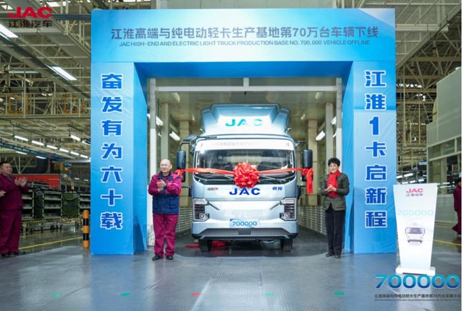 新起点,新征程!江淮1卡高端与纯电动轻卡生产基地第70万台车辆下线!