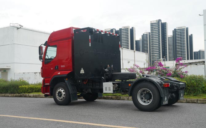 乘龙H5换电牵引车采用行业顶级电芯282kWh电池包,能量密度186Wh/kg,效率88%。电池包模组支架少,重量轻,循环寿命高。充换一体设计,5分钟快速换电,解决续航焦虑,保证24小时不间断运营,完美实现高频次倒短运输。电池还拥有高压安全防护,充、换电安全防护,涉水安全保障及电池实时安全监测四重安全保障,全面提升电池安全性。