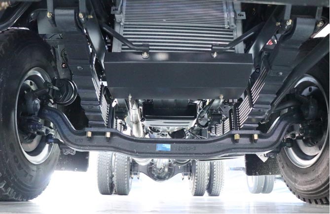 除了对车身尺寸进行优化,乘龙L3自卸车在底盘设计上也投入了大量的精力。采用宝钢材质,通过行业最大的6300T压力机进行一次性冲压成型,工艺成熟,承载性好。同时,通过拓扑CAE技术,对悬架结构进行了优化设计,使受力分布更加合理,有效避免了应力集中的问题,大幅提升了车辆的稳定性和可靠性。