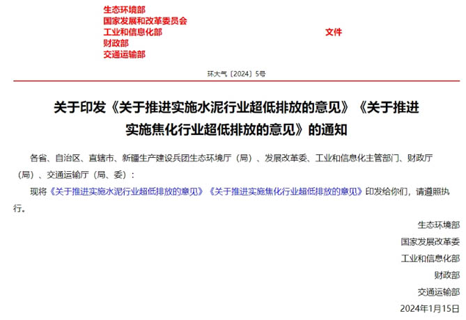 1月19日,生态环境部、国家发展改革委、工业和信息化部、财政部、交通运输部五部门联合发布《关于推进实施水泥行业超低排放的意见》,明确产品运输优先采用清洁运输方式。其中,进出企业的原燃料采用清洁方式运输比例不低于80%,达不到的企业,汽车运输部分全部采用新能源或国六排放标准车辆;重点区域企业清洁方式运输比例达不到 80% 部分,要采用新能源车辆替代。