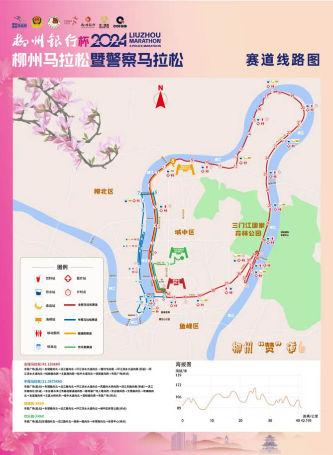 比赛项目:1.马拉松大众组(42.195公里);2.半程马拉松大众组(21.0975公里);3.健康跑(8公里);4.欢乐跑(4公里)
