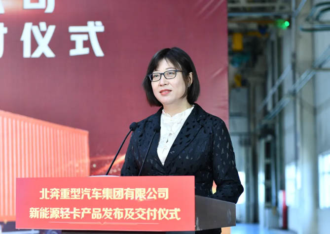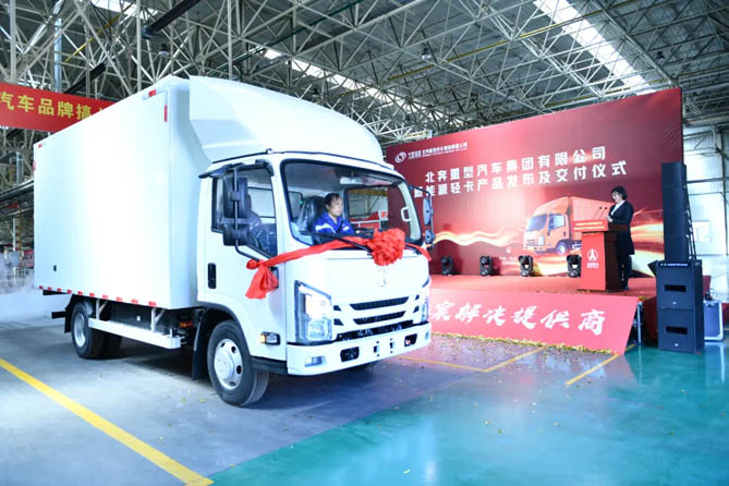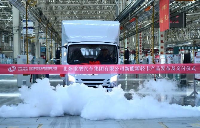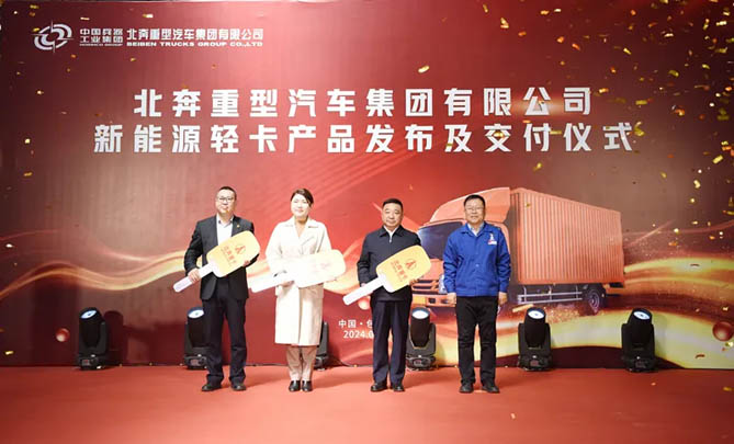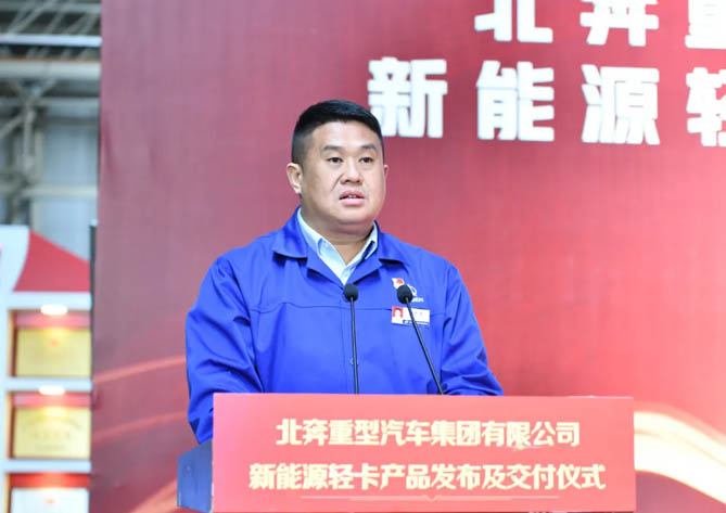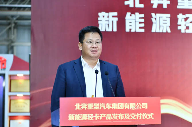 刘海泉宣布了北奔重汽首批新能源轻卡发车。