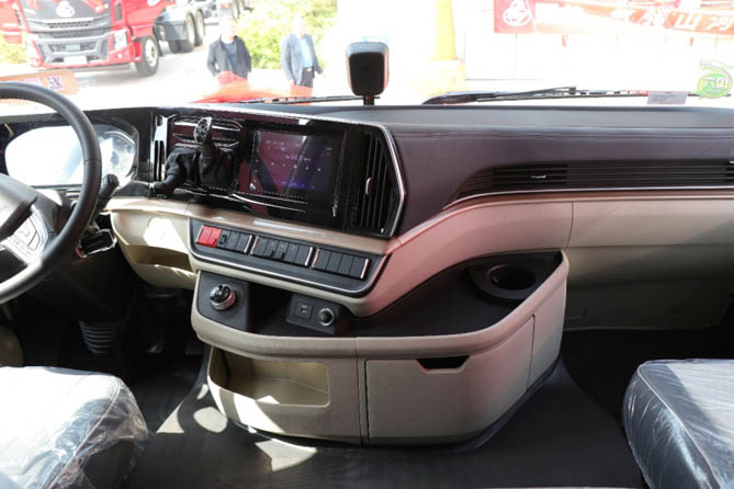 乘龙H5V LNG极致气耗版的驾驶室尤为值得一提,智能与舒适兼备的“5A级健康座舱”采用平地板设计,空间大、储物多。超炫无钥匙进入配合一键启动,轻轻一按即可升降车窗、自动大灯、自动雨刮。手机端即可实现空调开闭、发动机启停等智控功能,大幅提升驾乘的舒适度和安全性。