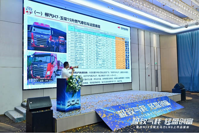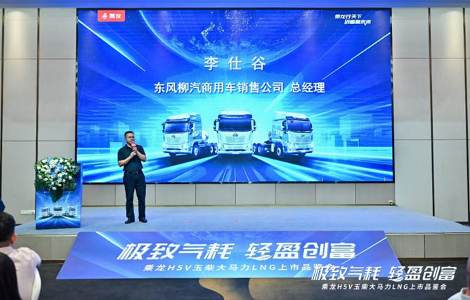 活动现场,东风柳汽与玉柴等核心合作伙伴及客户代表共同上台,举行了乘龙H5V LNG极致气耗版发布仪式,并通过宣传片对产品综合性能进行了展示。