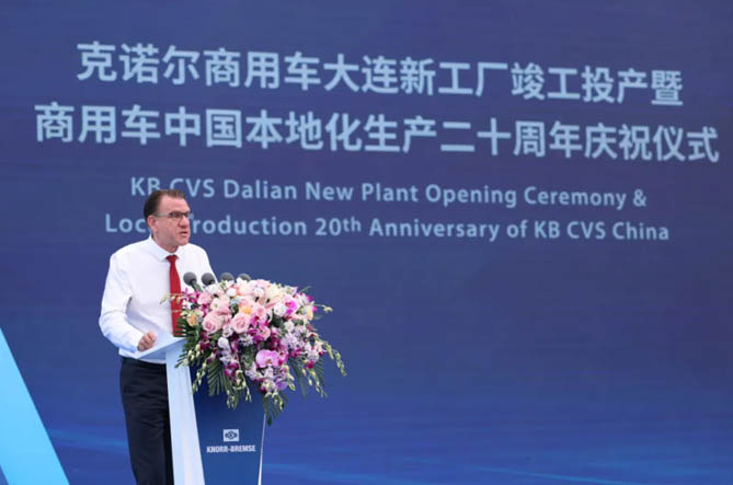 庆典上,克诺尔集团执行董事会成员、全球商用车系统负责人史必斯先生发表了致辞。他提到,中国作为全球商用车市场的核心驱动力,在克诺尔全球战略中居于核心位置。中国经济增长的强劲韧性为克诺尔提供了巨大的增长潜力。大连工厂是克诺尔集团在中国投资的重要组成部分,体现了克诺尔对本土客户的坚定承诺。大连新工厂的落成,深刻表达了克诺尔对中国市场的坚定承诺和加强本地服务能力、不懈追求技术进步与产业升级的决心。二十年间,大连工厂已发展成为集研发、设计、制造和测试于一体的综合性基地,产品涵盖动传系统、制动系统及轮端系统,引领行业向更高级别的安全与环保迈进。克诺尔将更有效地借助全球资源和本土化经验,不遗余力地满足客户的需求,服务本地、深耕中国。 克诺尔集团执行董事会成员、全球商用车系统负责人 史必斯