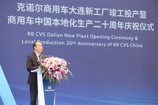 大连市委常委、金普新区党工委书记王守宇在发言中表示,克诺尔集团是全球制动系统市场的领导者,具备世界领先的技术水平和研发实力,深耕安全领域多年,积极推进全产业链的技术创新,是一家拥有高度社会责任感的知名企业。克诺尔与金普新区已有长达二十年的合作历史。过去二十年,克诺尔已成为新区经济发展的重要力量。克诺尔扎根金普新区,不断开拓创新,在实现企业本土化成长的同时,也为地方经济发展、产业升级做出了重要贡献。克诺尔选择在金普新区建设最先进的工厂,是对新区营商环境和产业基础的充分认可。金普新区将一如既往地支持克诺尔的发展,携手共进,共创辉煌。 大连市委常委、金普新区党工委书记王守宇