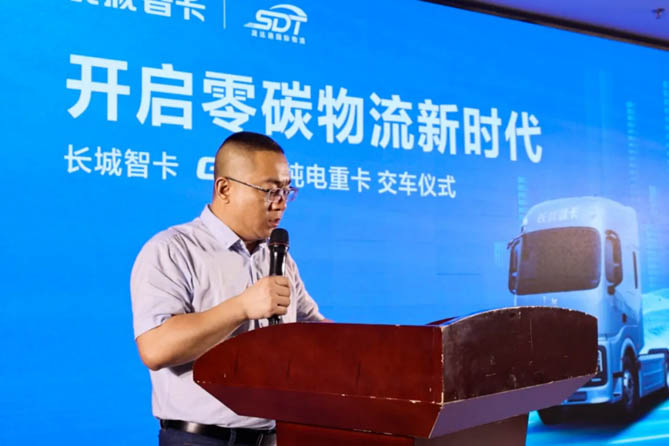 青岛晟达通国际物流有限公司董事长吕宝得表达了对新能源车的看好,他认为,长城商用车凭借先进的技术和丰富的经验,能够为快递运输提供高效、环保、可靠的运输解决方案,并希望与长城智卡共同打造区域市场绿色能源转型新标杆。