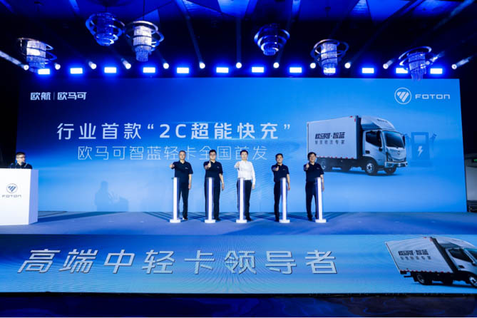 活动现场,针对新能源用户“充电时间长、充电慢”的核心痛点,欧马可联合宁德时代发布行业首款“2C超能快充”欧马可智蓝轻卡。得益于“2C超能快充”技术应用,使用超级充电桩只需18分钟即可完成动力电池20%-80%的补能,大幅减少充电时间,更好的满足快递、冷链等细分场景高时效性运输需求,实现作业效率与运营价值的双向提升。