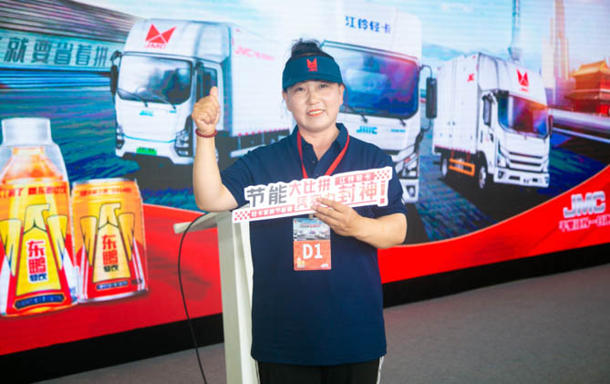 来自辽宁省大连市的高凤娟女士是复赛中唯一一位女选手,且巾帼不让须眉,以29.6 kWh的平均电耗荣获电车组第一名。她是江铃轻卡的忠实用户,与江铃轻卡有着不解之缘,目前已使用江铃轻卡产品长达16年之久,自有一台顺达小卡。因从事家具运输行业需要经常穿梭大街小巷进出地库,以前用过其它品牌的车,经常出小毛病,耽误运输。在周边人的推荐下,高大姐入手了一台江铃顺达,几年下来开了43万公里,无任何大修记录。高大姐提到,顺达装载家具走街串巷、出入地库十分便利满载油耗可低至8L,帮大姐精打细算的省下了不少油钱。最后,高大姐感慨到:“江铃轻卡不仅为我的创业之路节省了成本,还让我通过这次比赛更钟爱江铃轻卡的车型,我选择江铃轻卡的产品,是正确的。”