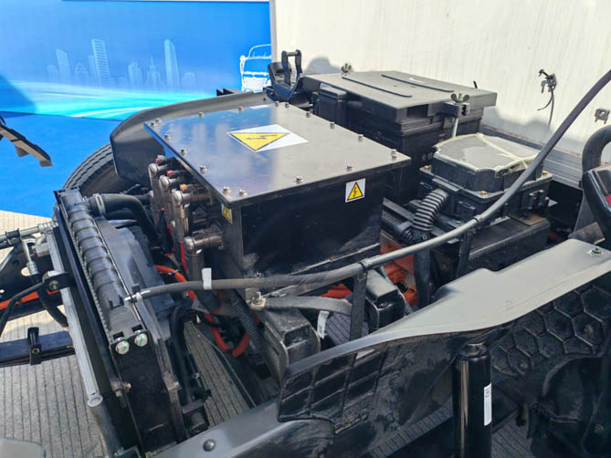 试驾过程,欧马可智蓝ES1新智版产品起步、加速时非常平稳,没有燃油车在换挡过程中产生的顿挫感;ECO模式整车动力输出更为平顺,将电能利用到极致;动力模式下的整车充满爆发力,即使在满载状态下,超车也是轻轻松松。强劲的动力输出源自高功率高扭矩电机,其峰值功率167kw,最大扭矩410N•m,最大转速12000 r/min,更好地满足高效货运的需求。