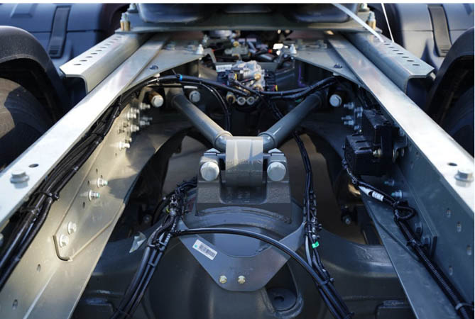 深知高精尖货物价值高且易受损的特性,汕德卡TIR运输车特别配备了V型推力杆,其稳定性堪比超强“弹簧”,为货物提供了全方位、无死角的保护。另外,重卡标准鞍座通畅离地高度1.25—1.3米(满载),汕德卡TIR运输车辆鞍座降低200mm,容积可增大7立方(13.75米货厢),货箱最大容积可做到130方。同时,车辆采用寒区款设计,能够更好适应寒区跨境贸易运输需求。