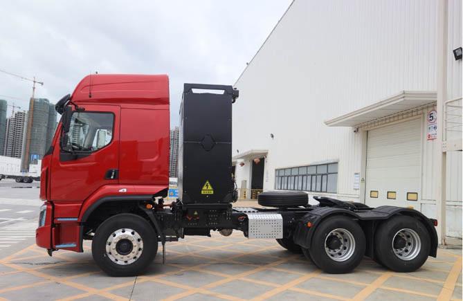 乘龙H5新能源重卡包含充换电一体牵引车、纯充电牵引车两大系列,提供282~423kW·h电池容量的产品组合,动力覆盖360-460kW,为用户提供全场景零碳、高效、低耗运输解决方案。
