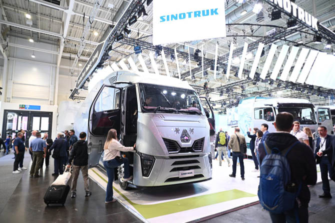 在此前9月16日2024德国汉诺威商用车展的媒体开放日上,中国重汽举办全新升级的黄河低风阻零排放节能列车发布会,会上展示了商用车领域具备里程碑意义的中国重汽超低风阻技术和黄河超低风阻重卡,在车展开放日可谓吸睛无数。