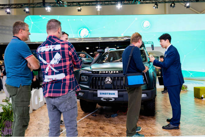 中国重汽的展品吸引了来自世界各地的专业观众与媒体的高度关注。这些产品不仅在动力系统上实现了低碳排放与高效能的完美结合,更在智能化、网联化方面取得了突破性进展,如自动驾驶辅助系统的应用、远程监控与故障诊断技术的升级等,均展现了中国重汽在技术创新与产品升级方面的强大实力与前瞻视野。