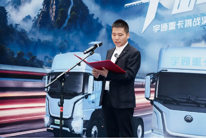 活动现场,中汽兄弟副总经理、中汽卡车兄弟俱乐部创始人杨金国宣读并公布了宇通重卡此次挑战的亮眼成绩。杨金国表示:“此次我们中国商用车综合性能测试组委会联合宇通重卡开展纯电重卡性能测试,旨在为中国商用车行业及广大卡友提供更多优秀产品认证,经过前期对宇通重卡的高温、高寒、节能、续航测试以及今天的复杂山路测试,我们见证了宇通重卡卓越的产品实力和优秀的性能表现。尤其是今天宇通重卡攀爬海拔落差达到400米、平均坡度10%的獐子崖盘山路挑战,根据国家公路技术规范资料显示,城市社会道路坡度在3%-6%,超过8%即被视为陡坡,可以说是宇通重卡此次挑战超过了社会道路的坡度极限。”