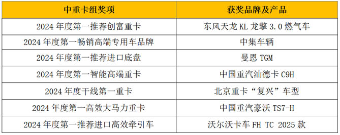 中重卡组获奖品牌及产品