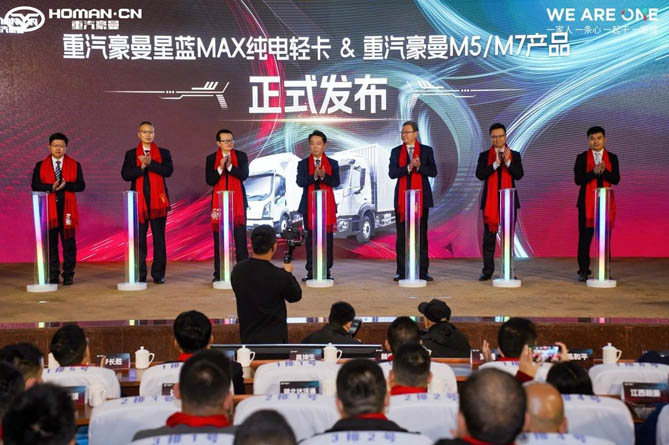 会上,中国重汽豪曼汽车发布了全新中卡平台车型M5/M7及重汽豪曼星蓝MAX纯电轻卡。新车型不仅代表了重汽豪曼在技术创新和产品升级上的最新成果,也预示着公司在未来市场上的强劲竞争力。