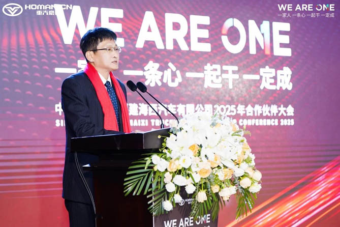 中国重汽集团福建海西汽车有限公司党委书记、董事长吴坤生作主旨演讲。2024年,面对国内商用车行业持续低位徘徊、国际市场竞争日趋激烈的双重挑战,重汽豪曼与广大合作伙伴紧密携手,共同面对市场的风云变幻,取得了非凡的经营业绩。